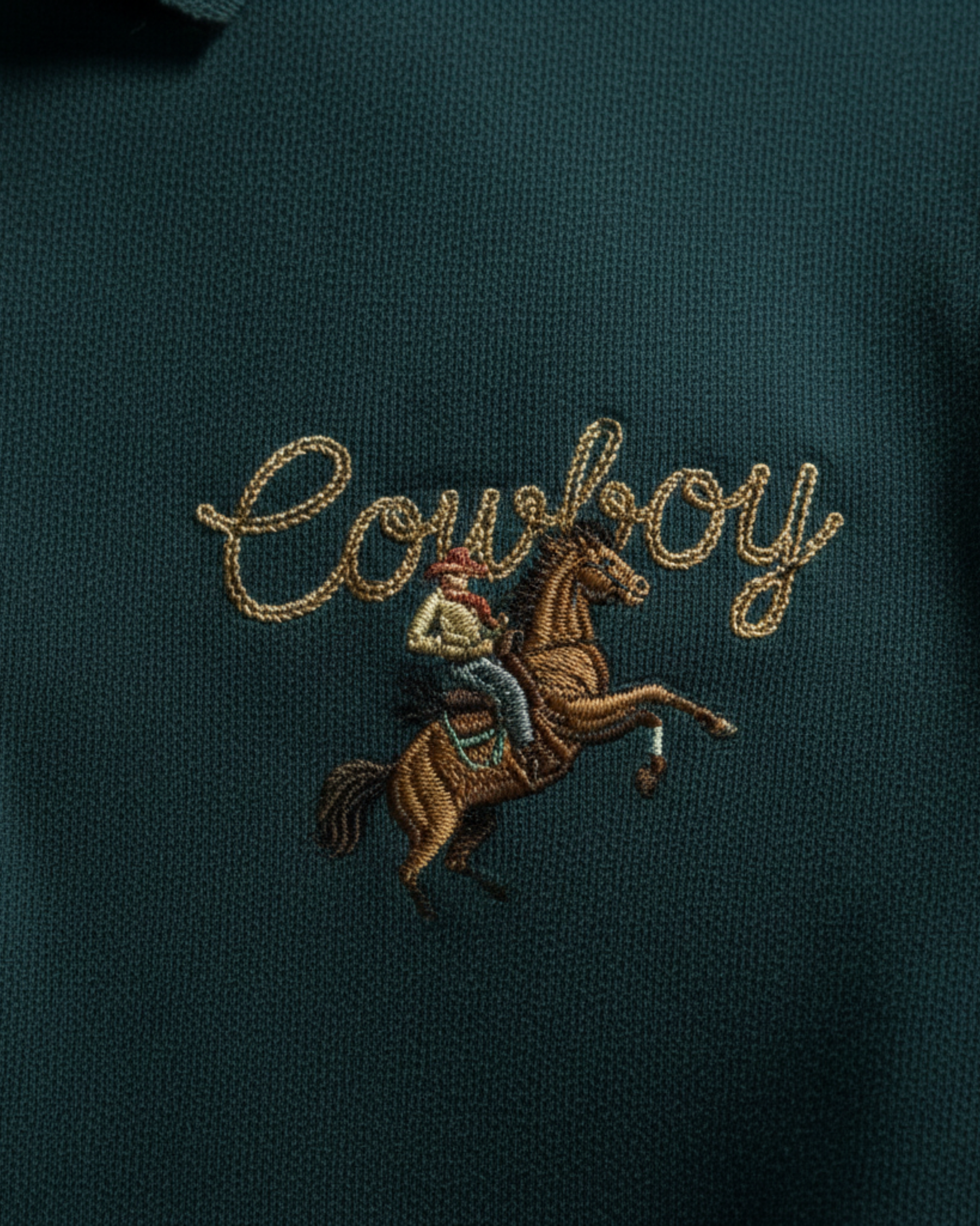 This Cowboy Embroidered Polo T-shirt brings a solid mix of comfort, structure, and personality without trying too hard. The fabric is 100% cotton with a 220 GSM Airtex weave, giving it a textured surface that stays breathable while still feeling premium on the skin. It’s built for long hours, warm days, and any situation where you want to look put-together without dressing up.